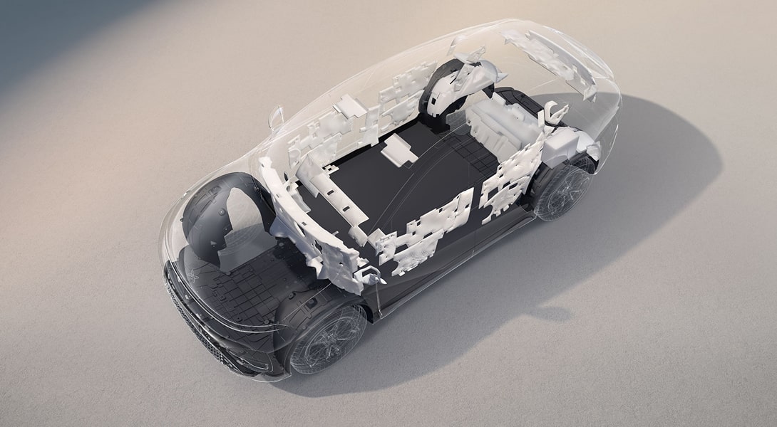 Low-noise sensitive vehicle body structure and multi-stage filtered damping suspension system ensure a quiet, serene cabin environment.