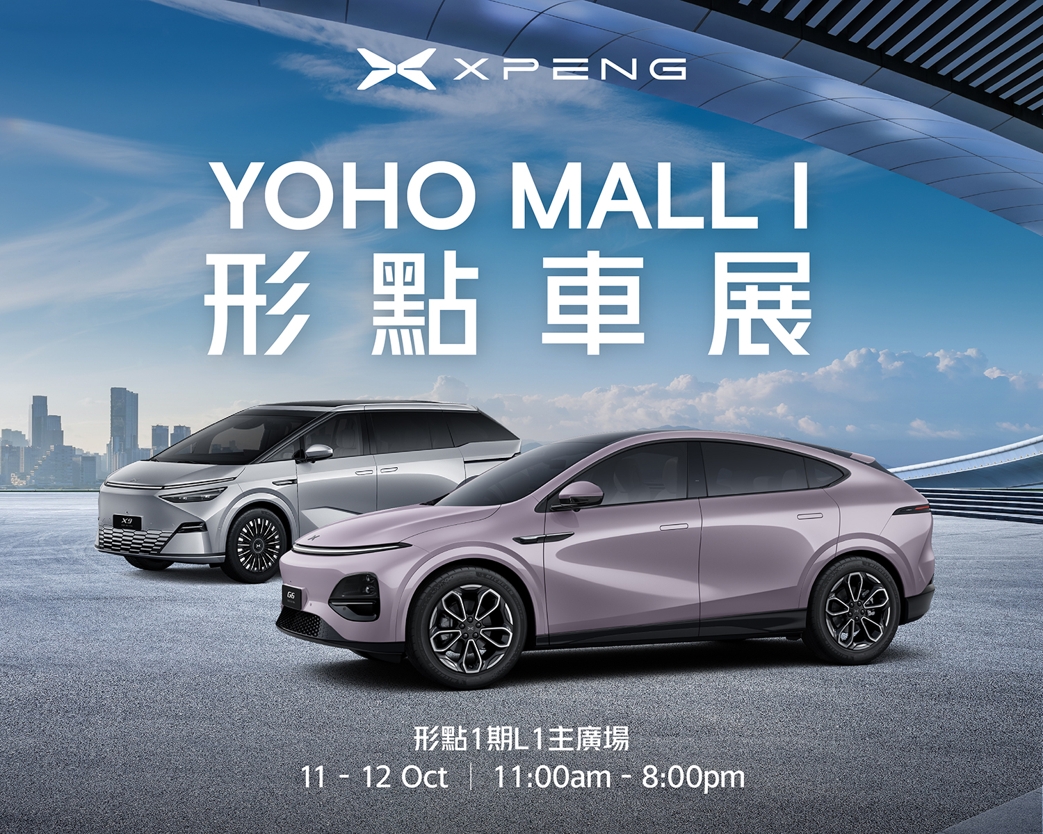 XPENG誠意邀請您於本週六及週日蒞臨 YOHO Mall 形點車展,親身感受智能電動車的魅力!